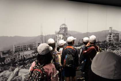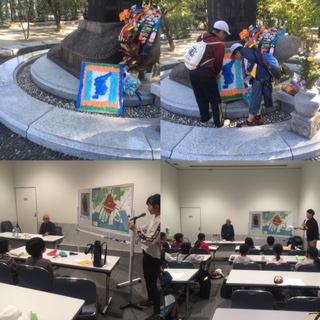 お好み焼きは、多くの子が全て平らげました。思ってたよりずっと大きい!美味しかった〜!と声が上がりました。資料館では、展示物を見るやいなや、食い入るように見学していました。時間が短かったのが残念でしたが、たくさんの資料から、子どもたち多くのことを学んでくれたと思います。