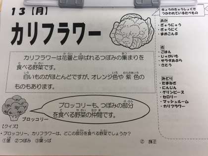 また、4年生に「野菜について知ろう」の栄養指導を行いました。