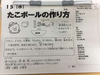 たこボールは、手作り献立で、給食調理員さんが1つずつ丁寧に丸めて、それを揚げています。子どもたちには、大好評でした。