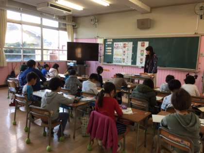 今日は、2時間目に1年生で「すききらいなくたべよう」について栄養指導しました。