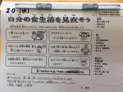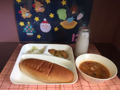 また、ミネストローネの中にアルファベットのマカロニが入っていて、子どもたちは「これはA、こっちはB」など、楽しくさがしながらおいしく食べていました。