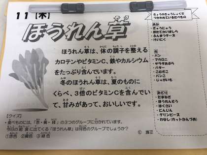 そのグラタンの中にほうれん草が入っていました。ほうれん草は、カロテン、ビタミンC、鉄、カルシウムなどが多く含まれています。
