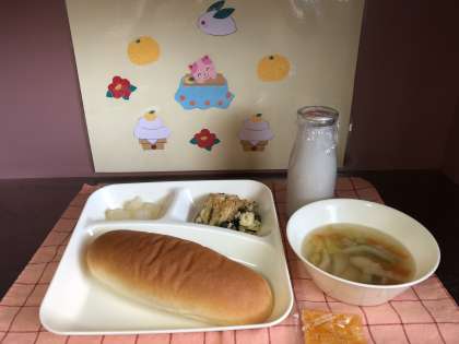 今日は、子どもたちに好評な「グラタン」が給食に出ました。