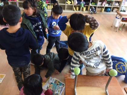 今日はみんなあそびで「新聞パズル」をしました。うまく組み合わせられるチームやなかなかうまく組み合わせられないチームもありましたが、チャイムが鳴る前にどのチームも完成させることができました。
