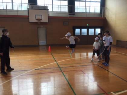 スポーツの得意な先生に教えてもらいながら楽しく縄跳びができました。