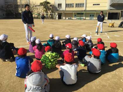 オリックスの方々にアドバイスをしてもらいながら、チームで協力して楽しむことができました♪♪また時間があれば、体育でもやってみたいと思います!
