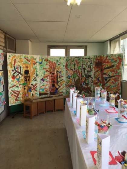 やっとみんなが戻ってきました。そこで、作品展を見に行きました。
