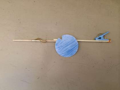写真のような、ゴムで円盤を飛ばすおもちゃを作りました。