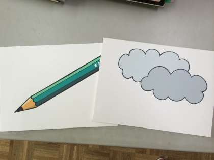写真のようなカードを、素早く見せて読ませていきます。フラッシュカードといいます。