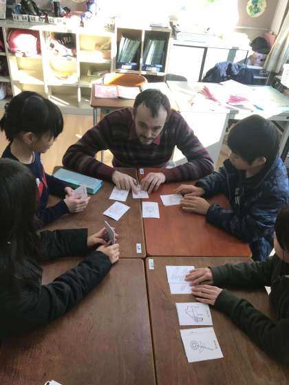 同じ種類のカードを出して、単数形と複数形の違いが分かるようにはっきりと発音できれば、カードをゲットできます。子どもたちは、しっかりと大きな声を出して発音しながら、ゲームに取り組んでいました。