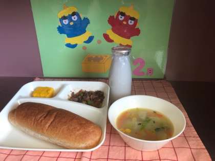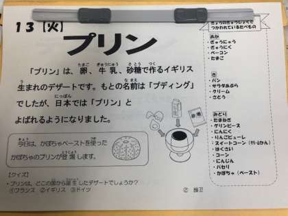 今日の給食では、かぼちゃペーストを使用したかぼちゃのプリンが登場しました。