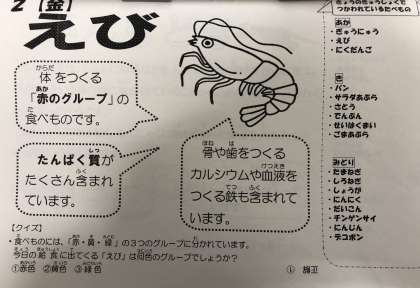 今日の給食の「えびのチリソースいため」のえびは、良質のたんぱく質が多く、脂肪が少ない低カロリー食材です。