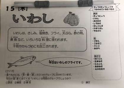 今日の給食の「いわしのフライ」は、給食調理員さんがひとつずつていねいに衣をつけて揚げてくれました。
