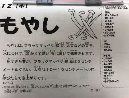 今日の給食献立に「もやし」がでました。
