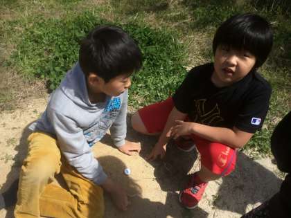 方位を確認するうえで使用する「方位磁針」のついても学習し、今日は早速方位磁針を使って運動場や学校のあちらこちらから方位の確認をしました!