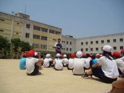 ウォーミングアップに、ドリブルや鬼ごっこをして、子どもたちとの距離を縮め、続いて試合をしました。