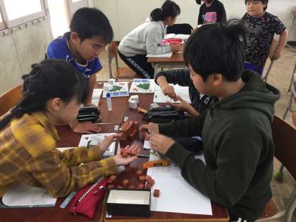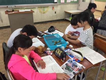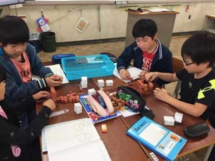 どちらのかさの方が大きいかをブロックを使って、班で協力して考えました。