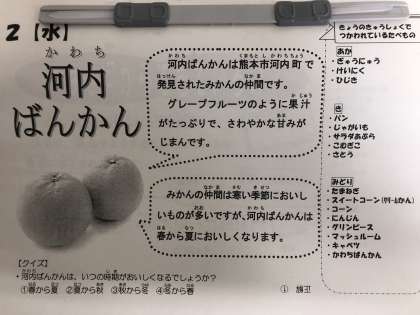 また、春から夏においしい「河内ばんかん」も今日の給食に登場しました。低学年は、むくのに困難してましたが、頑張ってむいて食べていました。