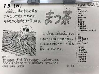 今日の給食献立の「まっ茶ういろう」に使用していました。