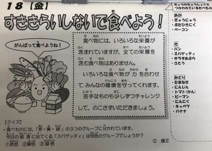 今日の給食献立は・・・