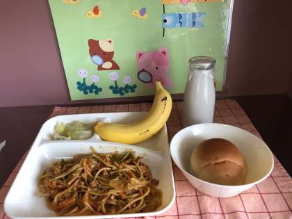 今日の献立は、子どもたちが大好きなカレーのスパゲッティでした。