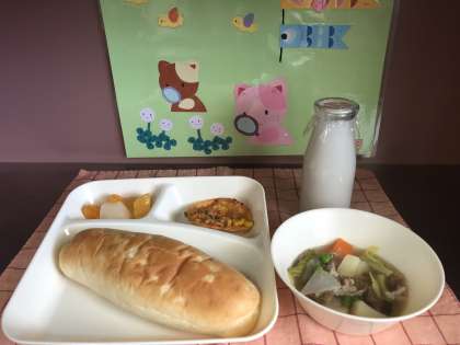 また、今日の給食に「おさつパン」が初めて登場しました。