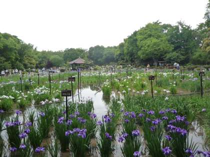 あいにくの天気にも関わらず、菖蒲園は大混雑。