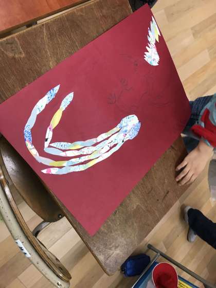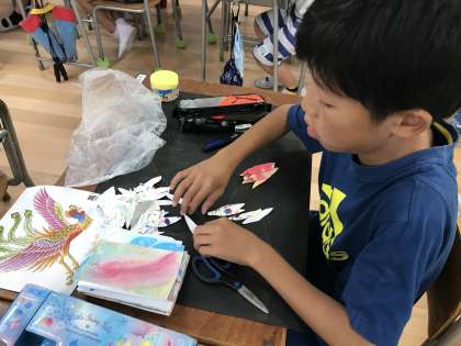 図工科では、色々な技法を使って作った紙をもとに、鳳凰を製作中です。