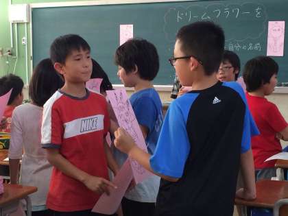 子供たちのドリームフラワーには夢がいっぱいかかれました。なかなか夢が見つからない子もいますが、5年生の子どもたちは、すぐに書くことができました。