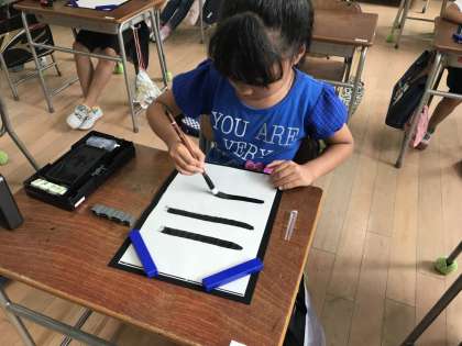 ちょっぴり緊張した様子でしたが、みんな、とっても力強い「一」を書くことができました。