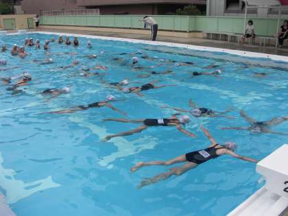 高学年は25m以上泳げることを目指して泳ぎます。