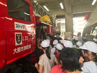 教科書やDVDを見て、消防の仕事についてじっくり勉強してきましたが、実際に見学することでたくさんの発見があり、見学って大事やなあ…と感じる時間でした。
