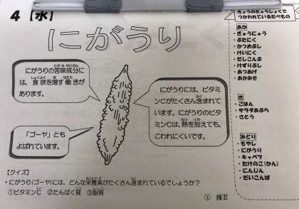 ビタミンC、カリウム、カルシウム、マグネシウムなども豊富で夏バテ予防に役立つ野菜です。また、通常ビタミンCは、加熱すると壊れてしまい、にがうりのビタミンCは加熱しても壊れにくいので、いろいろな調理法が楽しめます。