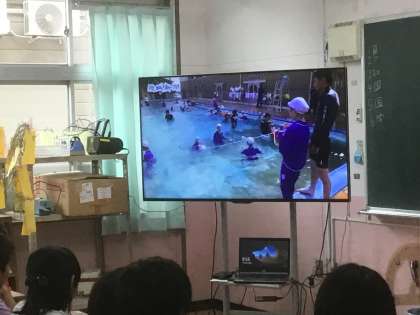とはいえ…水難事故に備えて、例年夏休み前に行っているので、今日は、映像を使って、命の守り方を学習しました。