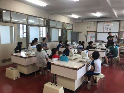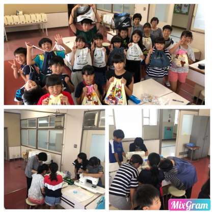 地域の方に来ていただいて、一緒に作りました。ミシンが動かなくなってしまったり、下糸が絡まったりと苦戦している子も多かったですが、地域の方に優しく教えていただき、思っていたよりも早く作り終えることができました。
