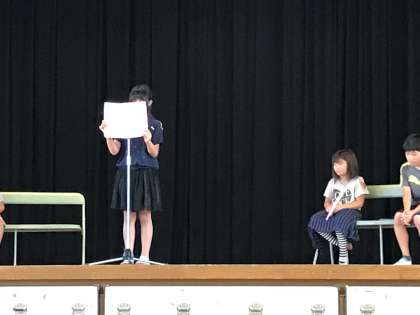 今日の朝会は、1・3・5年生の作文発表会でした!