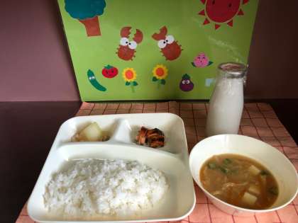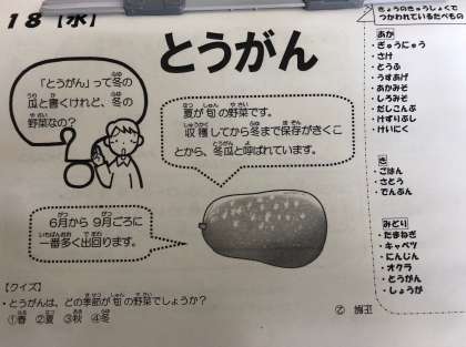 今日の給食献立の冬瓜は、熱帯アジア・ジャワ島の原産で、日本でも古くから栽培されています。