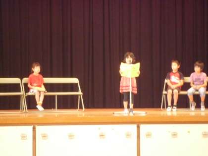 と言っていましたが、3人とも練習通りに、口をしっかりあけてはっきりと発表することができました。花丸満点です。