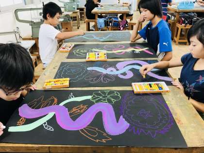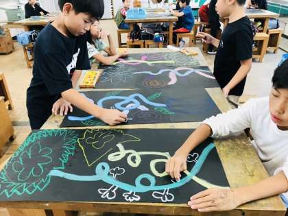 まぼろしの花だけあって、形も様々、とっても不思議です。工夫を凝らして描き進める4年生の姿は画家そのもの。