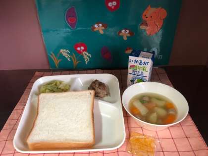 今日の給食の献立は、鶏肉の香草焼きは、「おいしい!」と児童に好評でした。