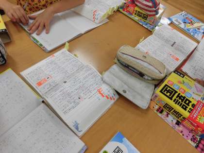 今日は、図書室で調べ学習をしました。ことわざを辞書で調べ、それをノートにまとめています。