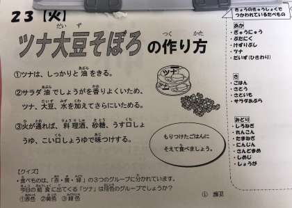 大豆が苦手な児童でも、ツナと一緒になっていることで「これは、食べれる!」や、「おいしい!」と好評でした。