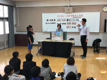 大阪府中央少年サポートセンターの方に来ていただき、非行防止・犯罪被害防止について学習しました。『万引きは、犯罪であること。』を人形劇で詳しく学びました。万引きをすることで、親を悲しませてしまうことや、誘われても断る勇気をもつことが大切だということを改めて学ぶ、いい機会となりました。