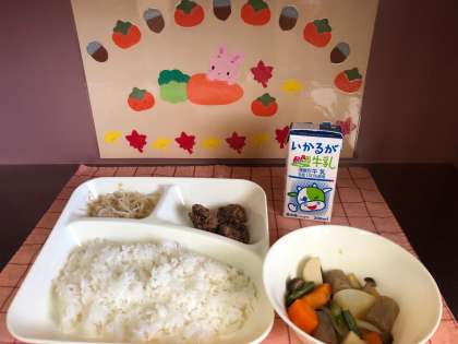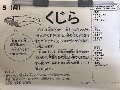 今日は、1年に1回登場する「くじら」が給食にでました。