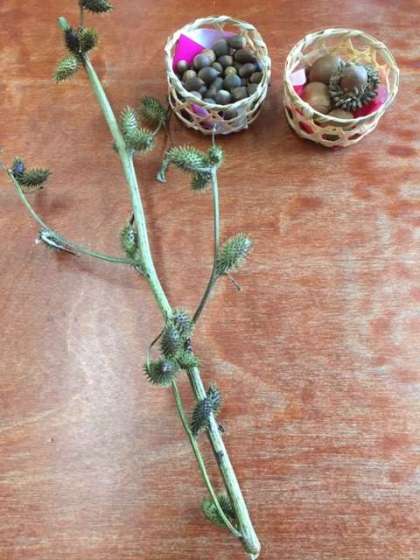 都会では滅多に見なくなった秋の木の実。どんぐりと合わせて、秋をあじわいました。