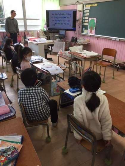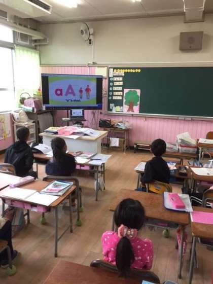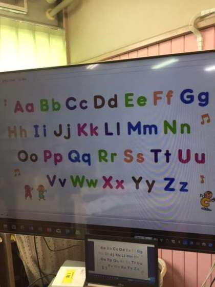 火曜日と木曜日の朝から15分ほど、英語の歌を歌っています。ずいぶん覚えてきました。テレビに映るアルファベットを見ながら、歌っているところです。