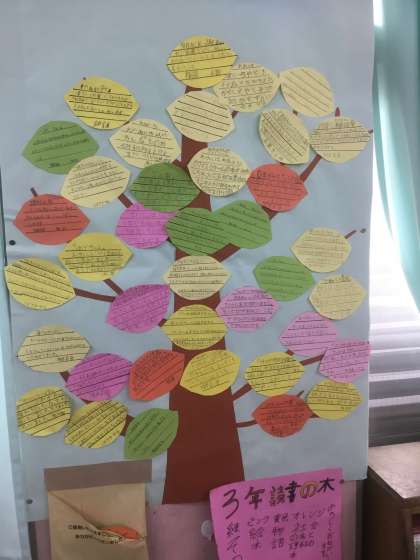 教室の「読書の木」が、また一段ときれいに紅葉しています。