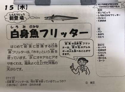 給食では、白身魚である「ホキ」を使用し、衣には、卵、乳の食物アレルギーの児童生徒も食べることができるよう、卵や乳を使用せず、小麦粉、でんぷん、砂糖、米粉、塩、ベーキングパウダーを加えた衣に、オキアミのむき身とアオサを加え、風味豊かに仕上げています。