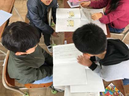 それぞれグループに分かれて、友達の考えと自分の考えを比べながら、わからないことを質問したり、似ている考えを一つにまとめたり、上手に話し合い活動をしていました。