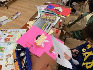 「飛び出すカード」をベースにして、おうちの人に心を込めて作るように声を掛けました。